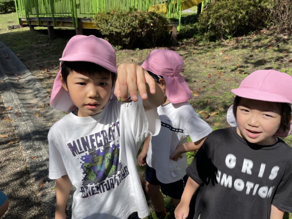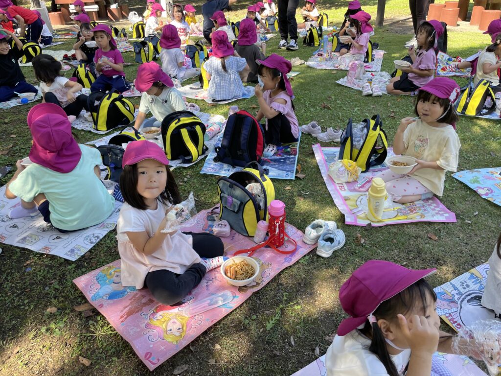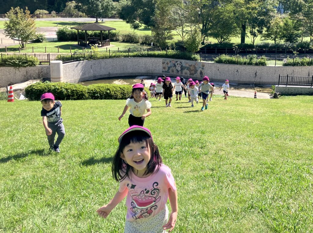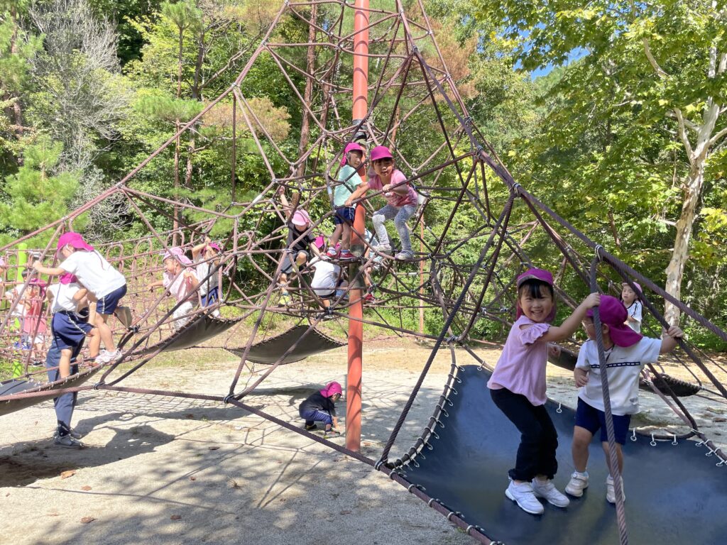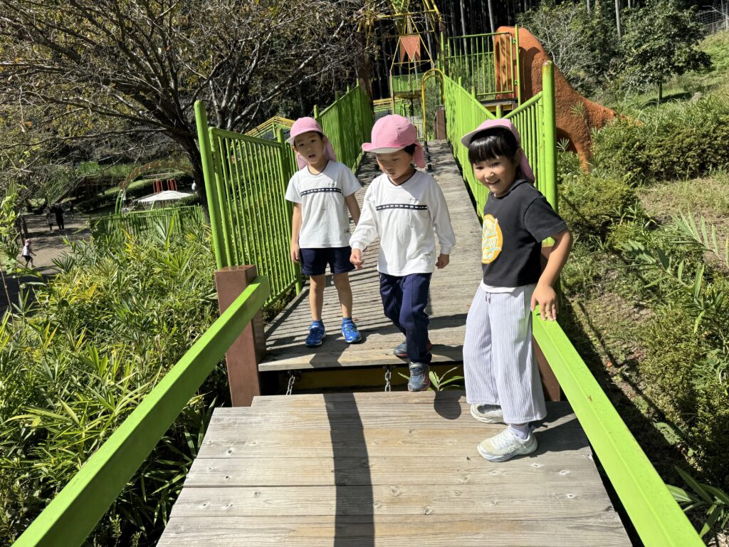 4歳児、5歳児の秋の遠足!🚌🍁 2025/10/21 平成榛原こどものもり公園に行きました❗ 広い芝生の山と大きな遊具に大喜びのみんな。元気に走り回っています。 大型遊具でもたくさん遊びました。 初めて見る遊具にも大喜び。 自分の好きな遊具を見つけて繰り返し楽しんでいました☺️ 芝生にはみんなが大好きな虫がたくさん。 バッタやカマキリを捕まえたよ! お昼ごはんは、お家の人に作ってもらったおにぎりとバーベキュー場で焼いた焼きそばとソーセージを食べました。 みんなで食べるととっても美味しいね😋🍴✨