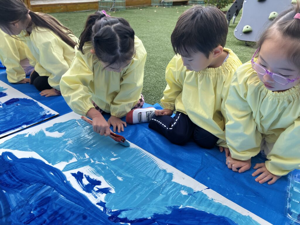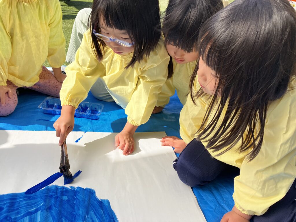 大きな模造紙にみんなで協力しながら塗りました!