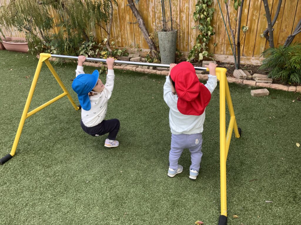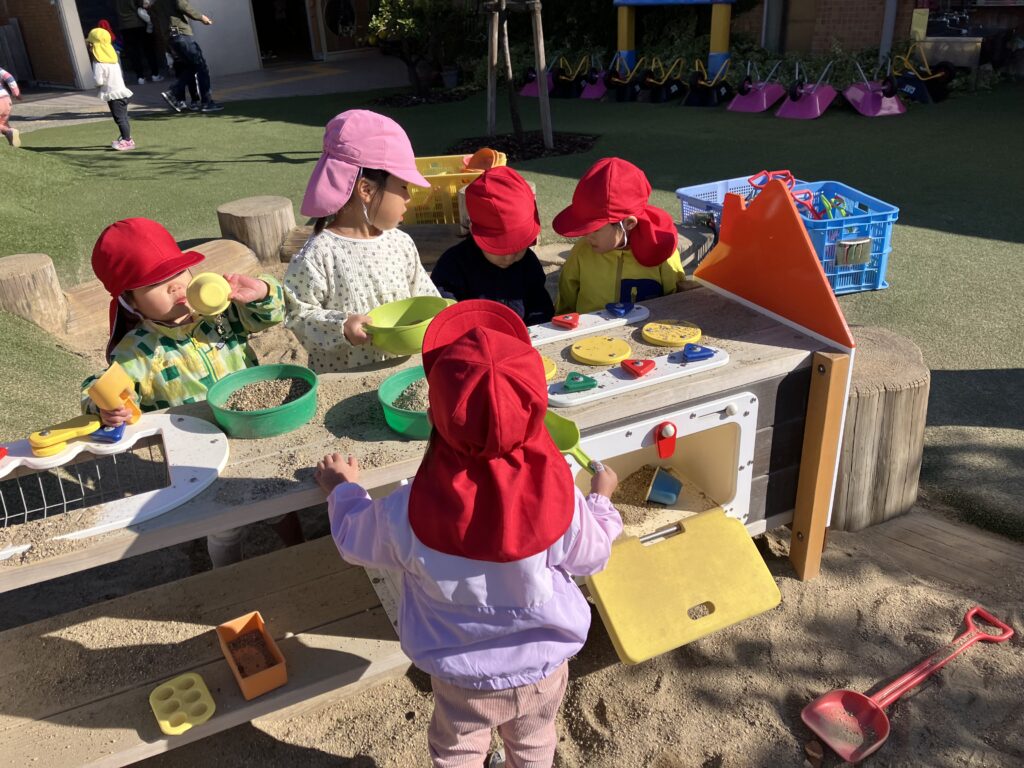 一緒に遊ぶの楽しいね! 2025/12/12 ゆりかごスウィングに乗り揺らしてもらったり…揺らしてあげたり… 鉄棒にぶら下がるお姉ちゃんの真似をしてみようかな? 一緒にクッキングをしているよ。何を作ろうかな? 子どもたちは異年齢児のお兄ちゃんやお姉ちゃんと園庭で会うと関わりを楽しんでいます。