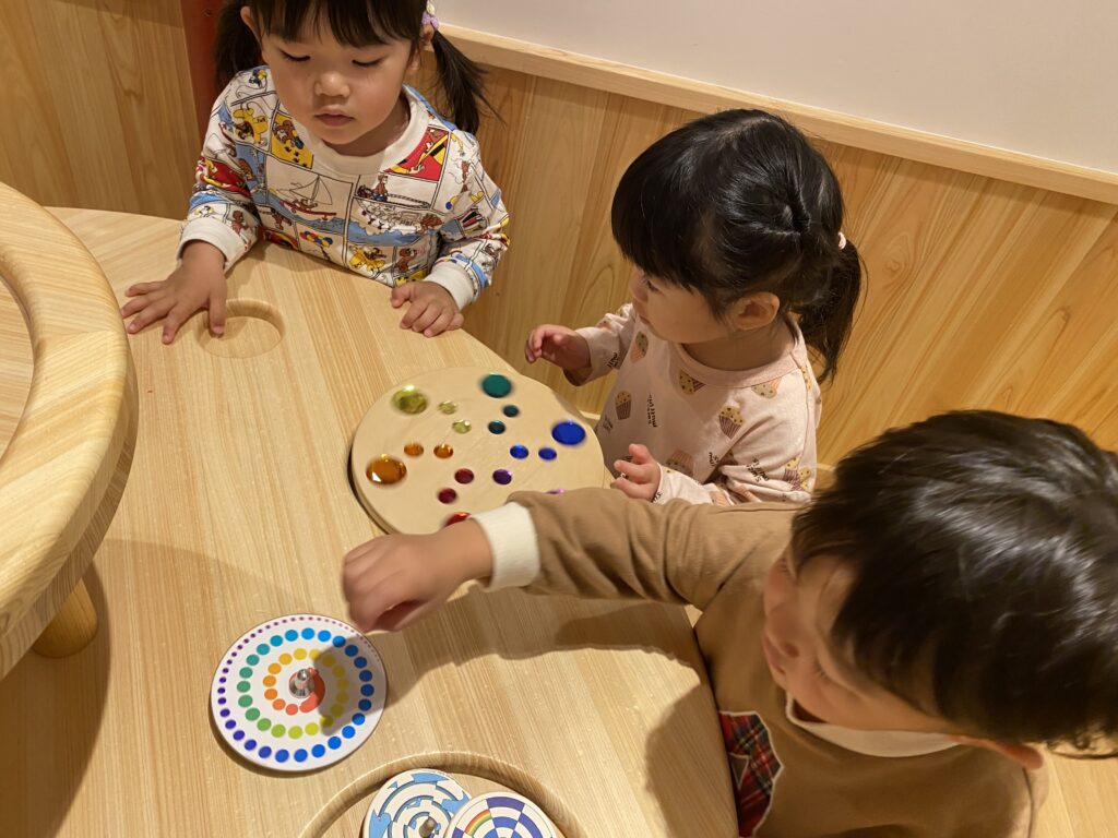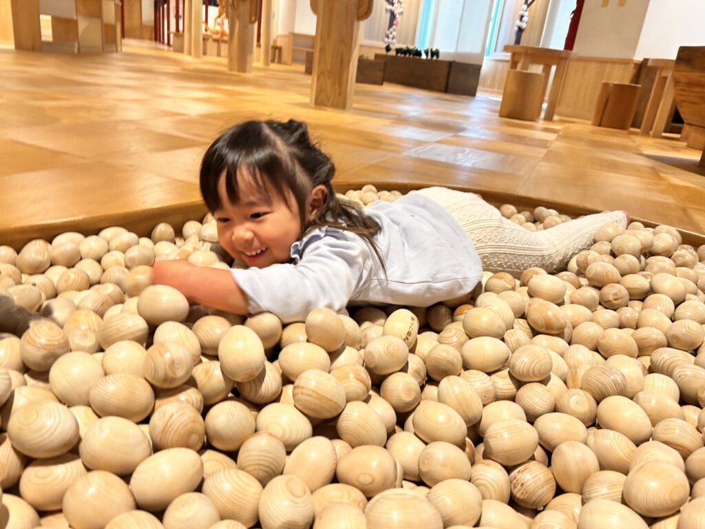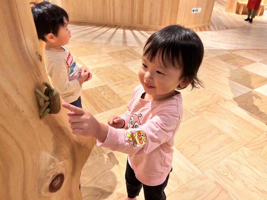 木のぬくもりを感じながら、様々な遊びのコーナーを体験しました。